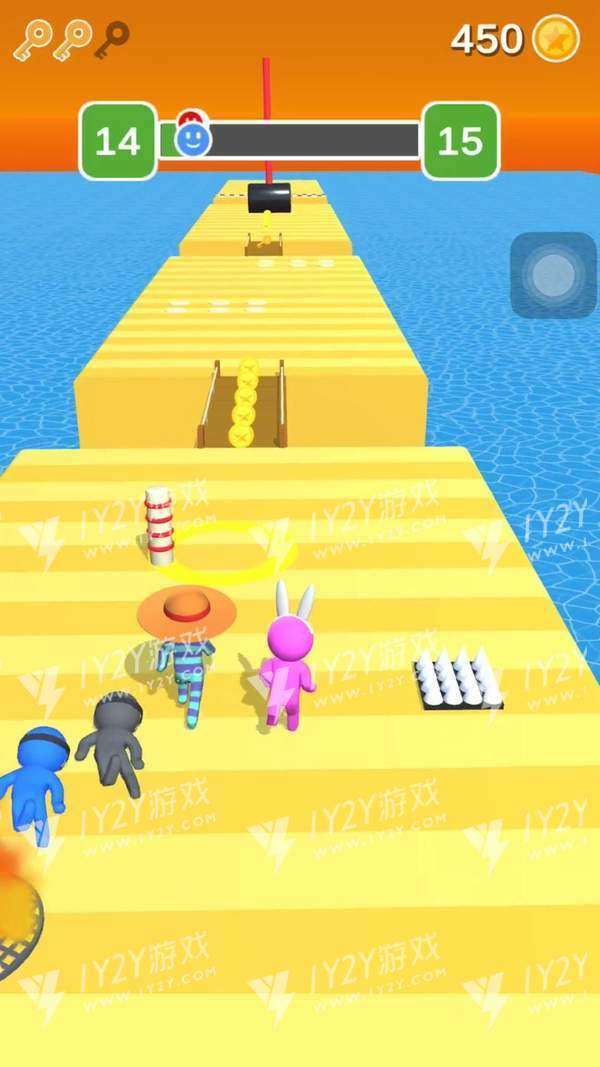 3、这款游戏非常比拼我们的手速,任何反应慢了的都可以会被机关打入水中。