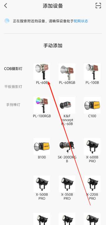 2、在添加设备页面中支持用户进行手动添加,选择合适的设备即可进行下一步操作。