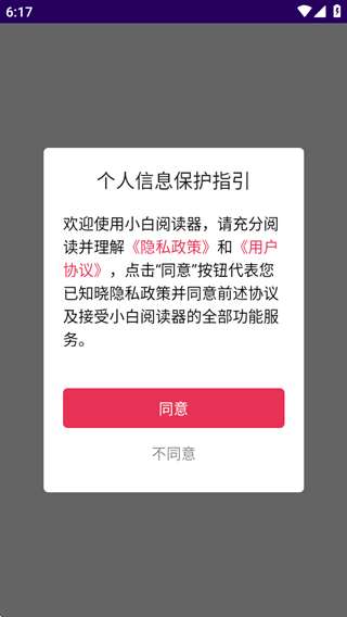 1、打开app,阅读隐私政策和用户协议之后点击同意即可进入。