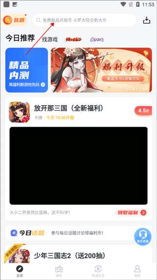 1、打开app,在发现界面中搜索你要下载的游戏。