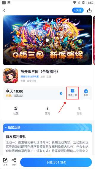 2、进入游戏详情界面后,点击优惠计划。