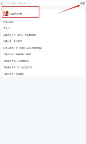 2、在搜索框输入游戏名,点击红框搜索按钮查找。