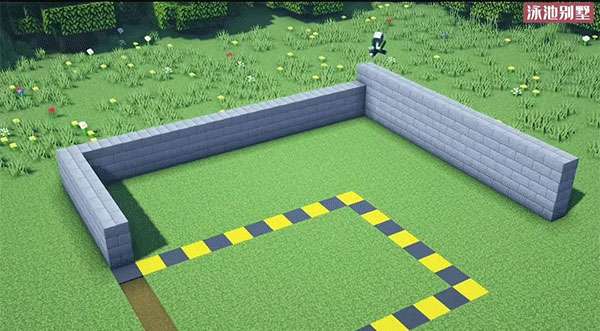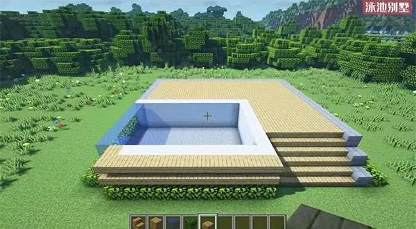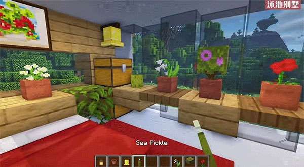 5、在使用蓝色玻璃做一面墙,围墙下面在垫一层输液装饰,让结构更加美观。