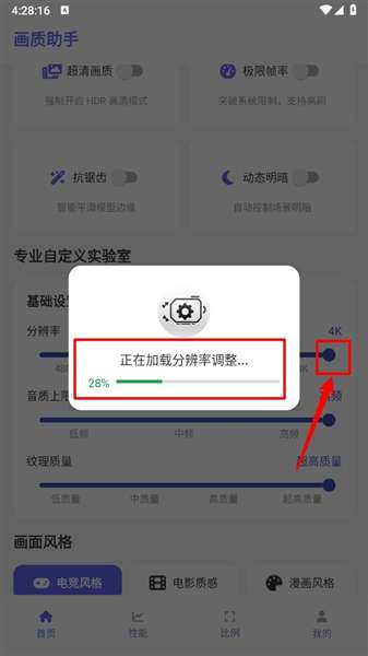 5、拖动圆球至相应的4k分辨率,就能自动加载并优化分辨率