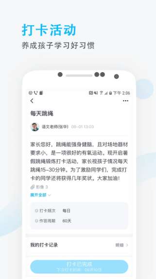 2、及时聊天:与老师在线沟通,参与班级事务讨论。