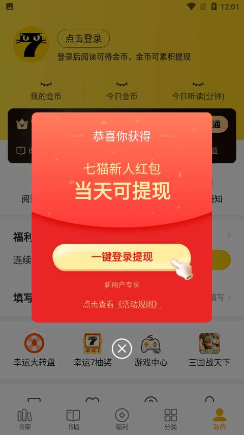 4、在福利页面中,记载了我们各种获取金币的任务和途径,其中新手福利只能做一次。