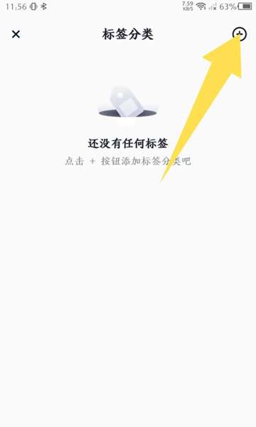 3、在标签分类页面上,单击右上角的加号图标。
