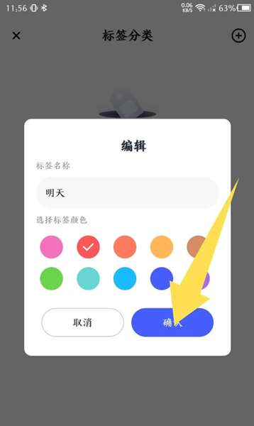 4、输入标签名称,选择标签颜色,然后单击确认。