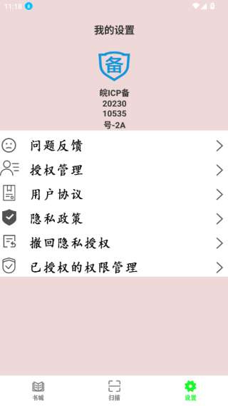 2、在我的设置中,您可以看到各种功能,如问题反馈和授权管理。
