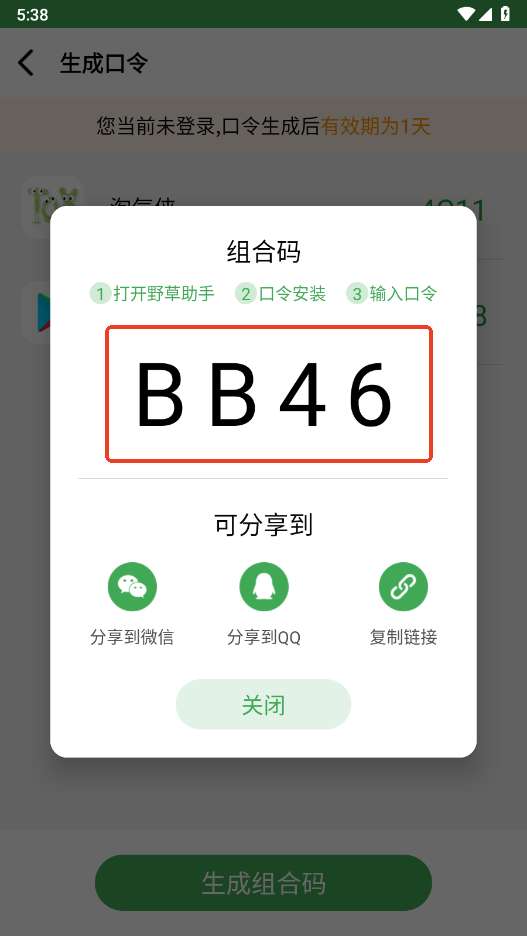 3、完成后,会生成口令,根据这个口令,就可以下载您分享的app啦。