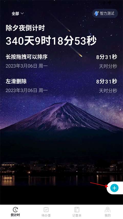 1、进入应用程序主界面时,您可以看到两个倒计时。我们点击右下角的加号。