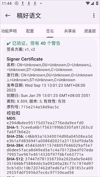 4、有查看和复制签名的功能,有利于在修改软件或游戏后重新签名。