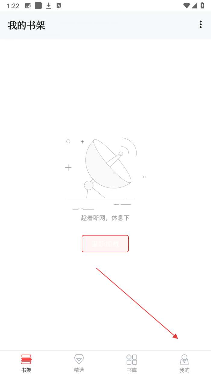 1、在我的书架页面,点击底部【我的】,进入个人页面。