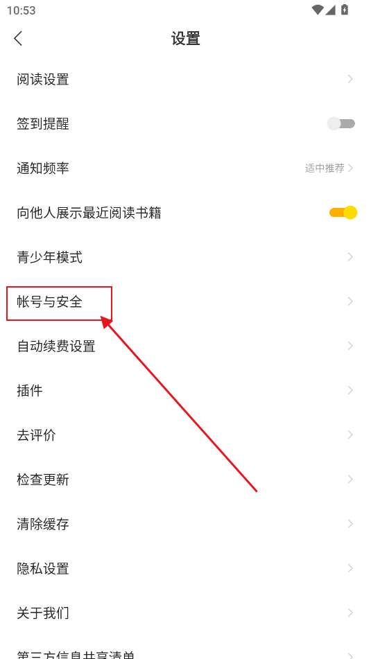 2、转到设置页面,单击“帐户和安全”选项。