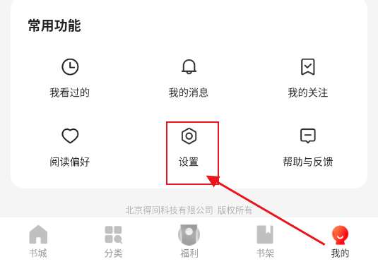 1、打开阅瓣免费小说,点击底部的“我的”选项,然后点击“设置”选项。