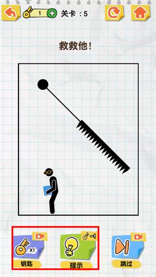 1、画线解谜:玩家通过画线来创建安全的路径或防御屏障,以帮助火柴人避免危险。