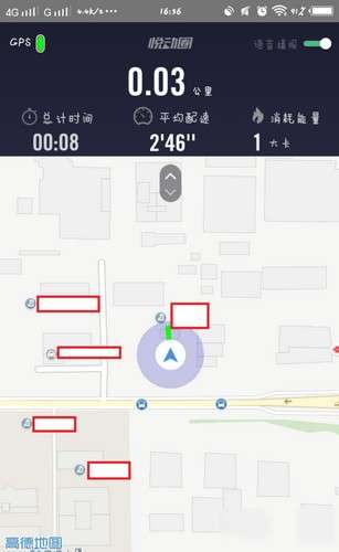 3、绿色图标显示您的位置(我在公园跑步时GPS信号较弱)。