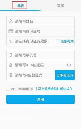 1、首先下载并安装本站提供的马上金融app,注册并登入进去,如下图。