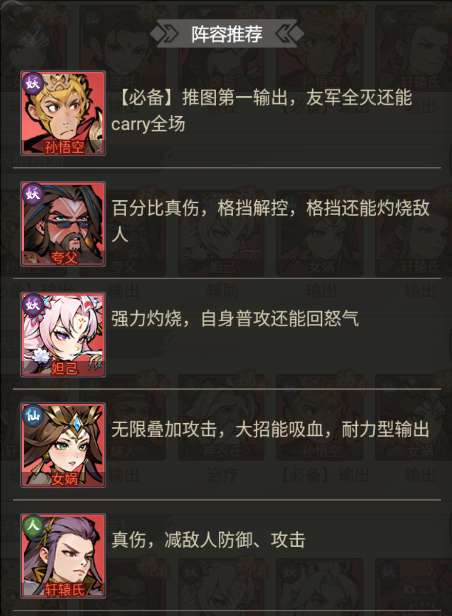 孙悟空、夸父、妲己、应龙、刑天。