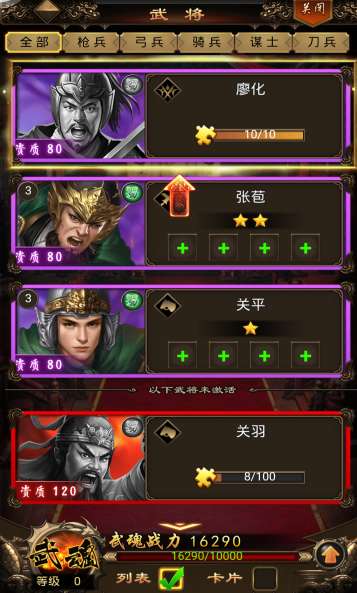 5、平均能力型:对武将技能没有特别要求,万能的阵容,能应对所有城池。