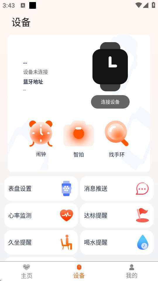 1、快速连接腕带:打开软件后,按照提示完成腕带与手机的蓝牙配对,自由实现即时数据同步。