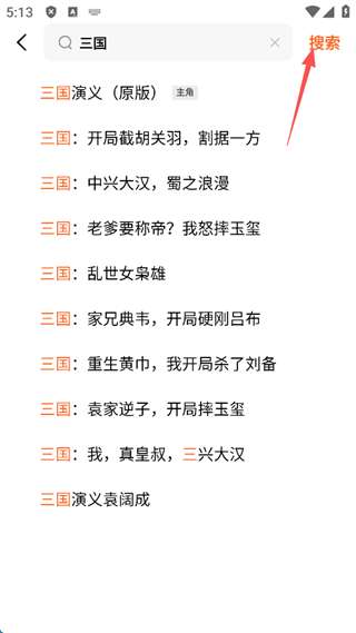 2、选择一个自己喜欢的题材小说,点击屏幕右上角的“搜索”。