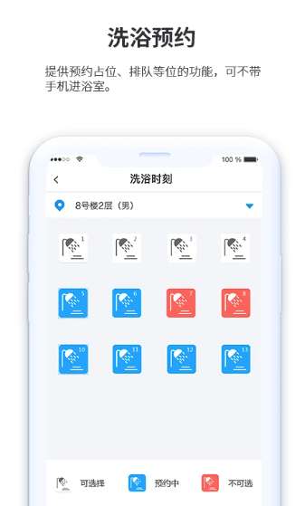 3、预约洗澡 提供预约占用、排队对立的功能,无需手机就可以直接进入浴室。