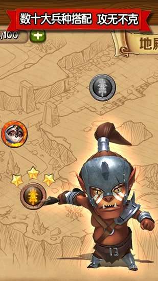 在这全新的世界中,急需一位英勇无畏、能征善战的英雄来统帅部落大军,终结这场战火纷飞的战争,为人民缔造一个繁荣昌盛的世界。而这位英雄非你莫属,千军万马皆听你调遣。快拿起你手中的军符,施展你的智慧,带领部落军队向那些挑起战争的部落展开进攻。