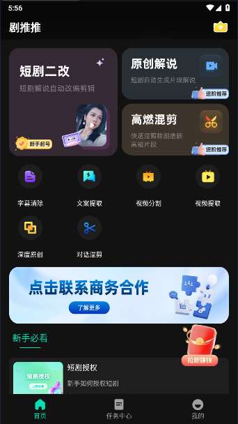 剧推推是一款非常实用的在线推剧软件,拥有全新的界面设计,允许用户直接导入原始视频并自动生成,轻松享受便携的视频剪辑服务和推广,还具有个性化的功能和选项,无需任何经验即可上手使用,可以自由输入影视名称来搜索查找,随时随地自由浏览观看热门影视,能完全满足所有使用需求,还提供了详细的视频推广教程,允许用户自由推广各种精彩影视,免费观看感兴趣的影视剧,有兴趣的用户欢迎下载软件。