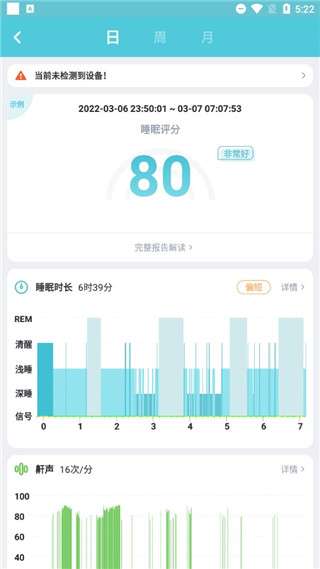 5、用户还可以查看周月时间的睡眠状况,从多个例子中了解自己的健康情况。