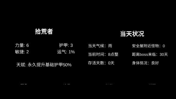 5、在进入拾荒地区之前点击信息了解拾荒者的力量、护甲、敏捷度以及运气,还有丹田的状况。