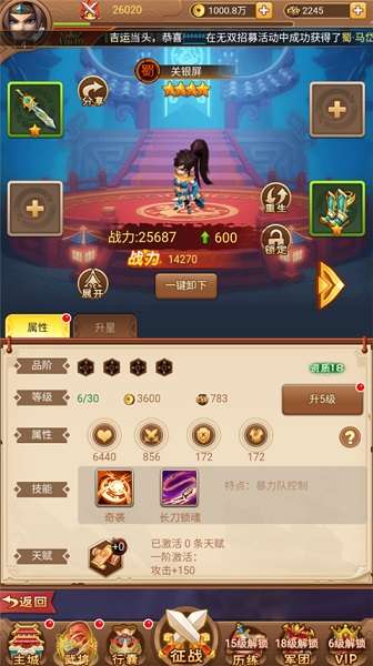 5、利用通关获得的资源,可以进一步提升武将等级,增强队伍整体实力。