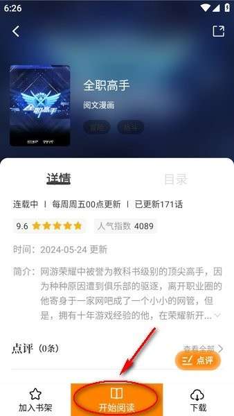 3、选择要看的漫画,点击进入后,就有简单的介绍,点击“开始阅读”。