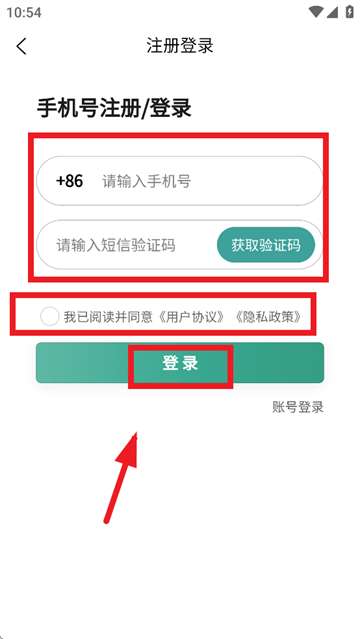 2、输入手机号,短信验证码,勾选我已阅读并同意 《用户协议》 《隐私政策》,点击登录即可。