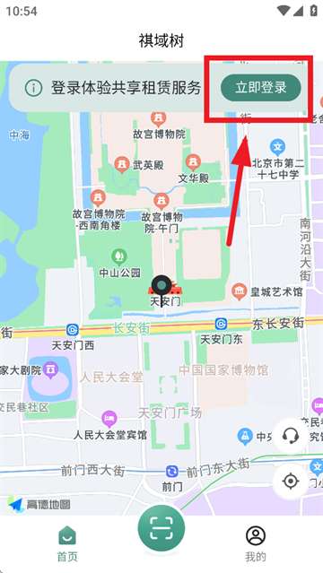 1、下载安装并打开祺域树换电APP,进入首页后点击立即登录。