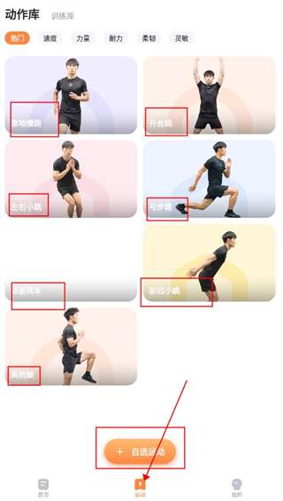 2、进入首页,可以看到很多ai运动训练,可以选择自己感兴趣的进行运动。