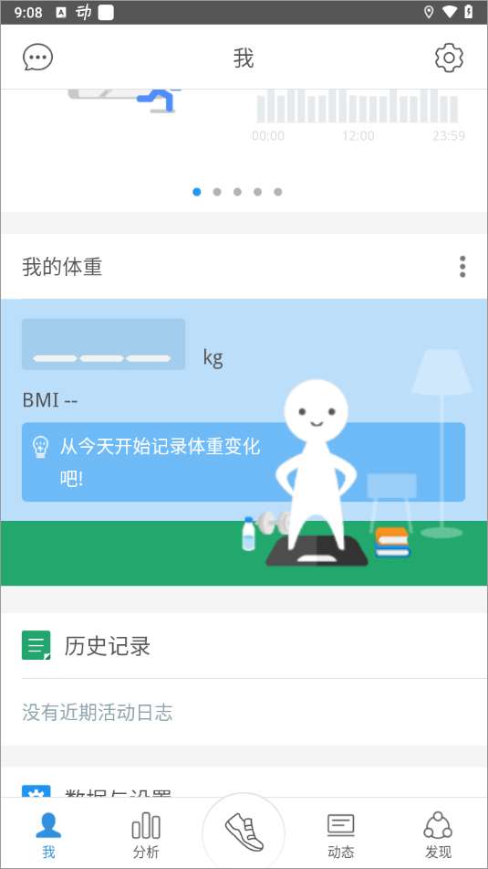 1、首先,进入计步器,直接点击界面右上角的设置图标。