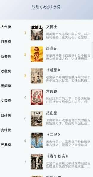 4、让你查看不同的小说列表,各种流行小说都能快速找到。