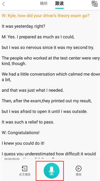 4、点击跟读的话,用户只需要点击录音间,跟着读即可。