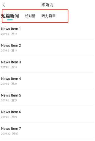 1、打开在本站下载的软件,点击进入首页,点击你想要学习的等级以及学习的板块,如我们选择练听力。