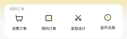 2、你可以在中间看到“我的订单”,然后你可以看到“消费者订单”+“订单”+发型设计+“金币兑换”。