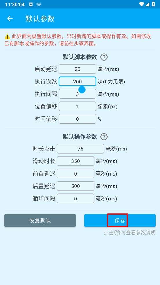 7、在参数中设置完成参数设置后,点击"保存"。