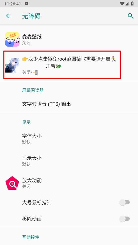 4、比如,进入无障碍页面点击"龙少点击器"。