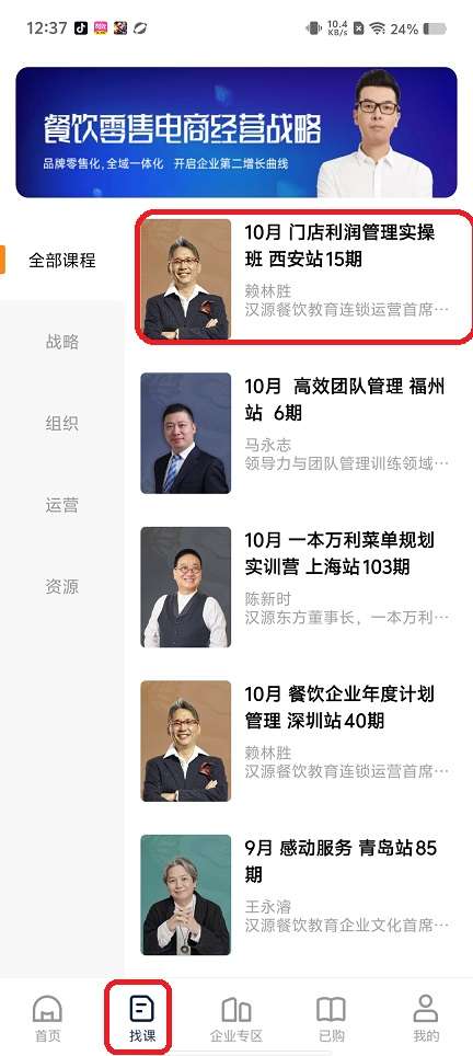 1、在主页上,点击您最喜欢的课程以查看其费用信息。