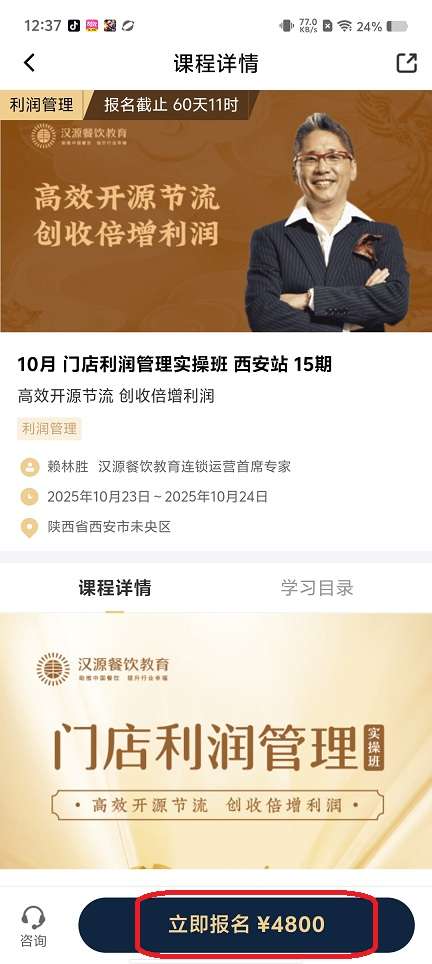 汉源餐饮教育app怎么收费