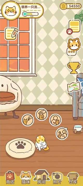 领养一只流浪猫是一款极具魅力的休闲模拟游戏。这款游戏的玩法简单易懂,极易上手,玩家在游戏中的主要任务便是收养形形色色的流浪猫。每一只流浪猫都带着独特的经历与个性,等待着玩家给予它们温暖的新家。一旦决定收养,玩家便需承担起细心照顾它们的责任。从为猫咪精心搭建舒适温馨的猫窝,到操心它们的饮食起居,无论是日常的喂食、喂水,还是处理它们的排泄问题,都需要玩家亲力亲为,事无巨细。