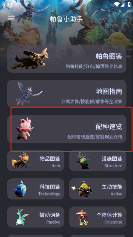 1、帕鲁指南浏览:轻松查看帕鲁的详细信息,包括元素、栖息地、技能和孵化方法。