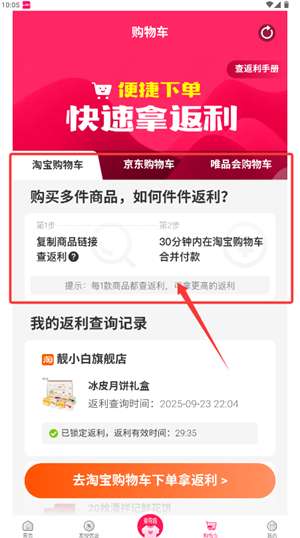 3、购物返现:在淘宝、京东等平台购物还可以获得返现,返现率高达95%。