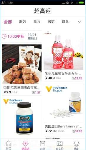 4、进入超高返页面,在这里购买商品即可得到超高的返利。
