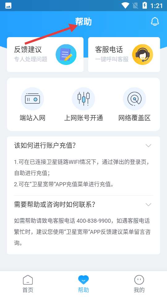 2、帮助页面突出反馈建议与客服电话,针对账户充值、咨询帮助等问题给出解答,提供贴心售后支持。